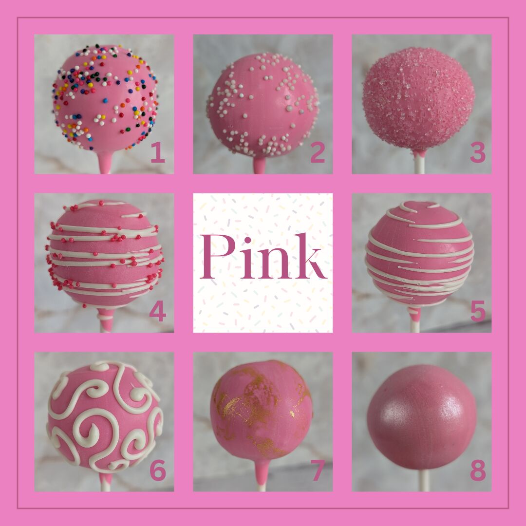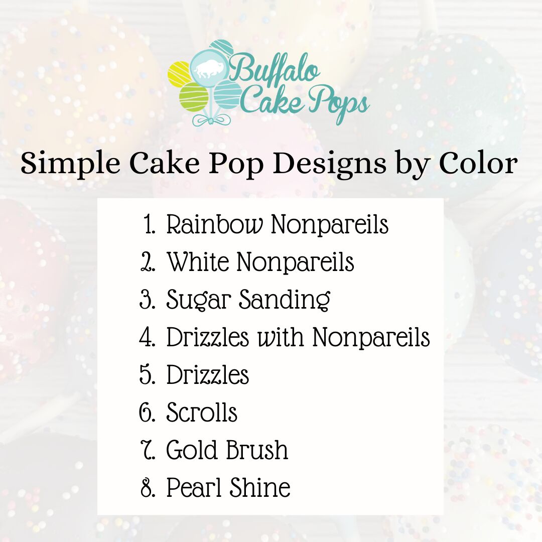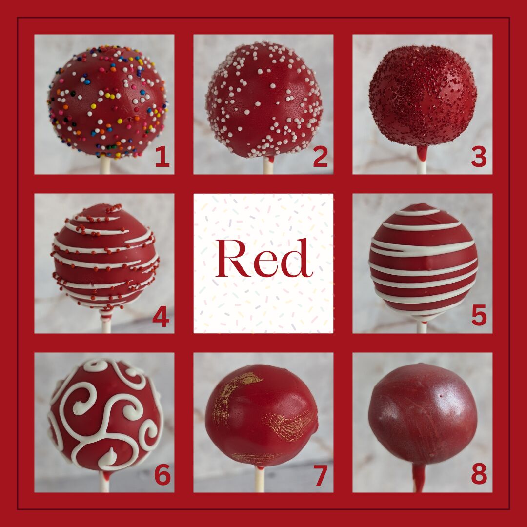 This listing is for 1 dozen cake pops. This is an easy way to see your options of colors, designs and flavors, and order directly from our site! All pops in this listing come as pictured, on sticks. Choose from a single design, color and flavor per one dozen.
