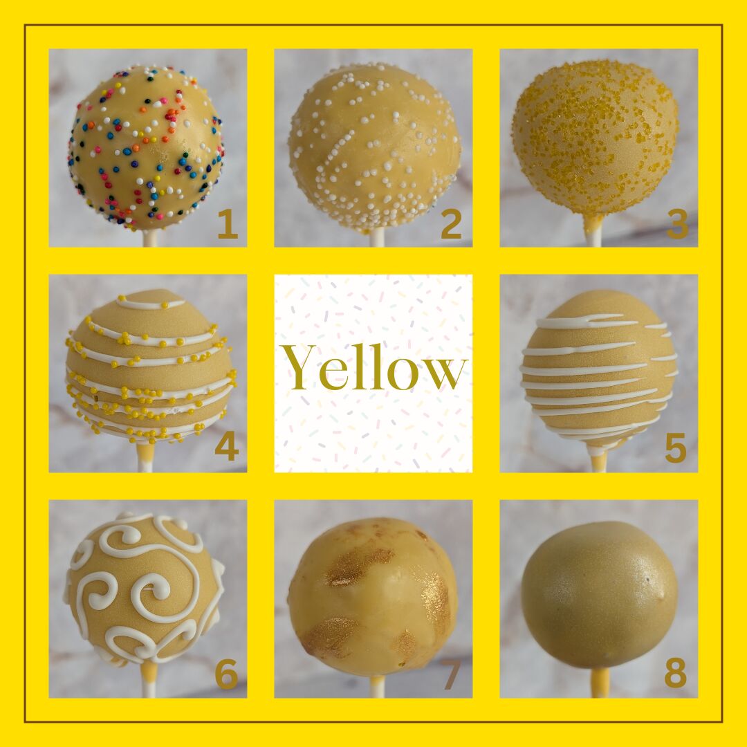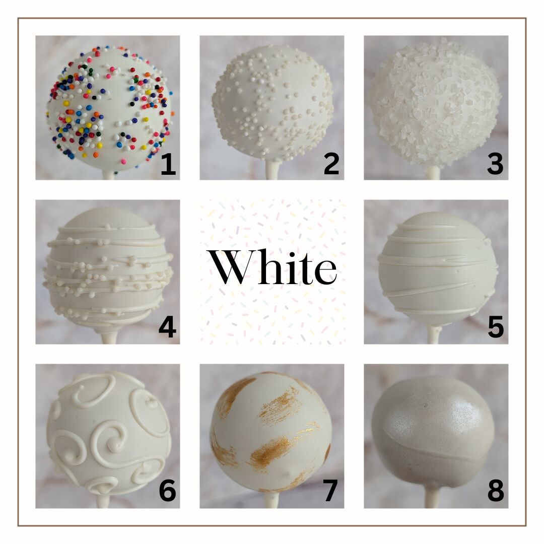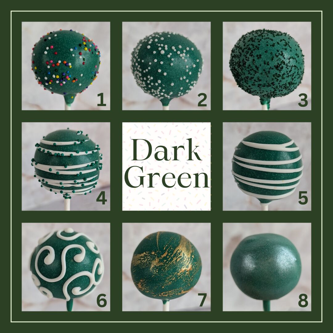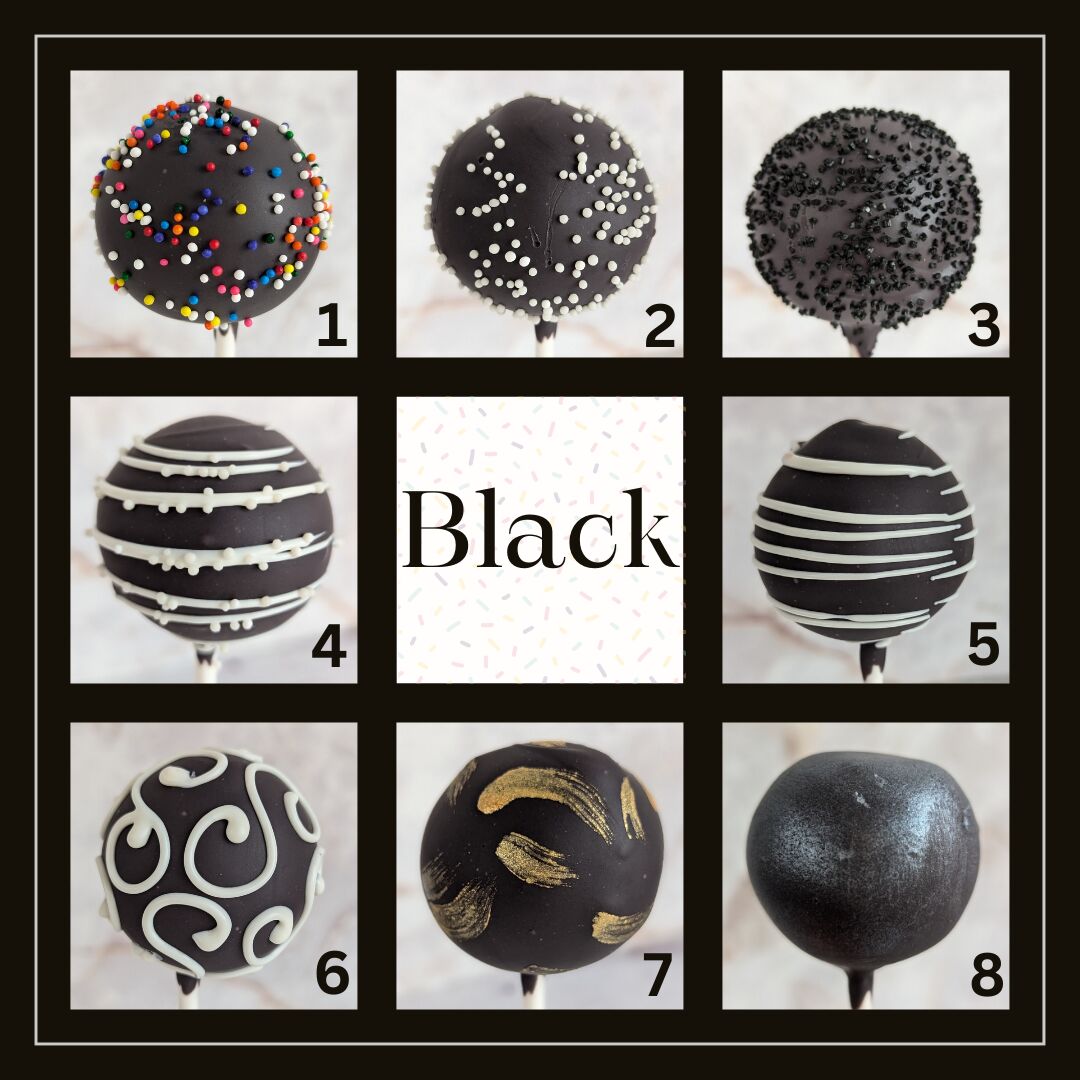 This listing is for 1 dozen cake pops. This is an easy way to see your options of colors, designs and flavors, and order directly from our site! All pops in this listing come as pictured, on sticks. Choose from a single design, color and flavor per one dozen.