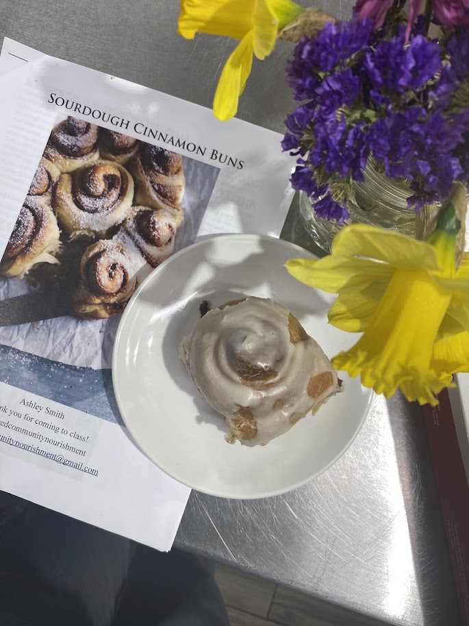 Taste sourdough cinnamon buns baked fresh in the kitchen. The class is great for beginners or for those looking to expand their understanding of sourdough baking.